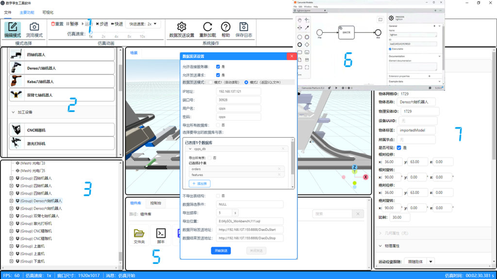 4. 可视化窗口:实时展示物理组件工作状态,调节视角、组件部署状态。