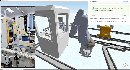 在设备离线状态下对生产过程进行仿真;所有组件全部运行在PC本地;由孪生的虚拟组件模型执行仿真任务,在前端可视化展示。